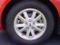 Torch Red 2009 Mustang V6 coupe, left side view showing off the Mustang lower bodyside silver stripe and 45th anniversary fender badge.