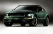 A Ford promotional photo of a Highland Green 2009 Mustang Bullitt with 18 inch premium gray painted cast aluminum wheels, a pony-less front grille, and 4.6L (281 cubic inch) V8 engine rated at 319hp. The Bullitt V8 has the Ford Racing Power Upgrade which increases the horsepower over the GT by 19.